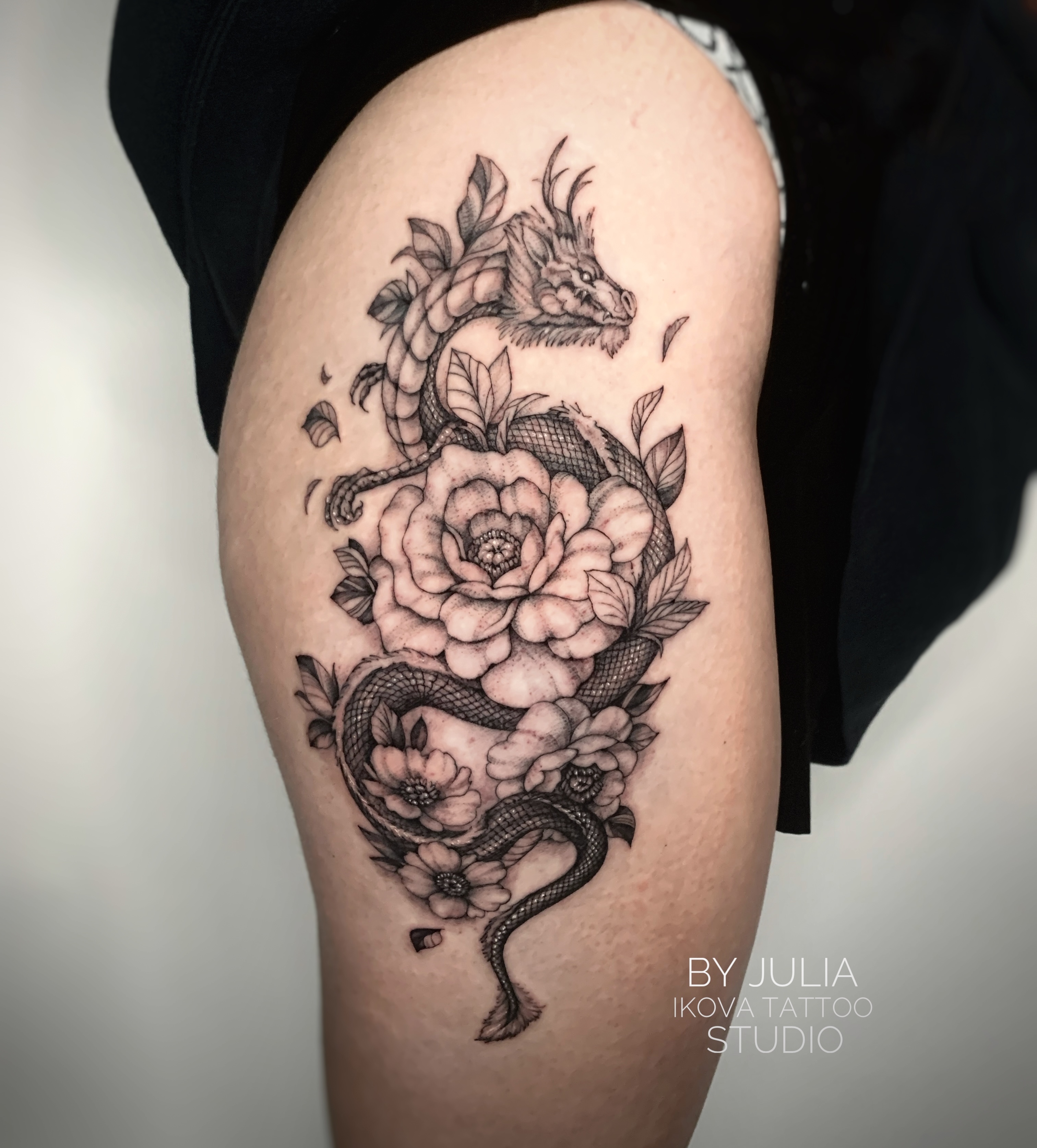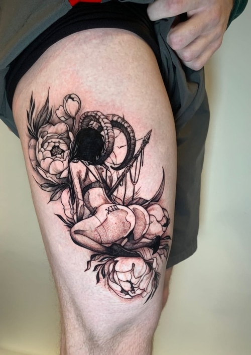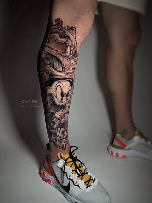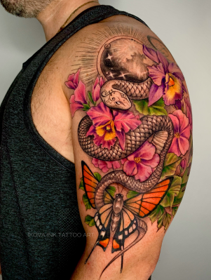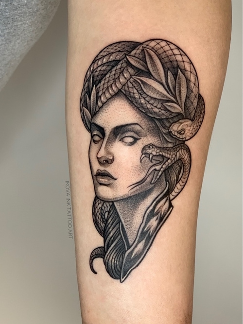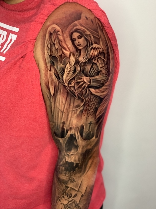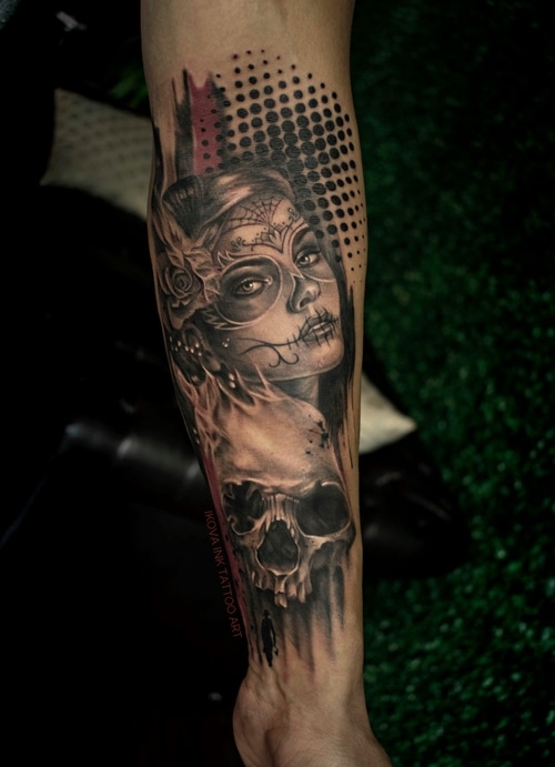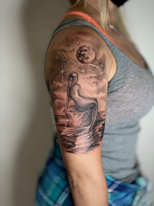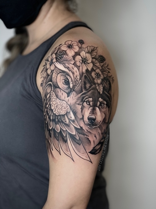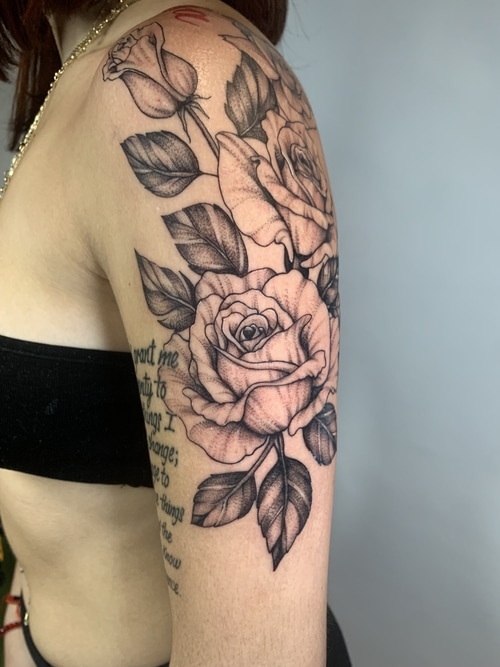 Black and gray tattoos are done without use of color but done with grayscale shading that involves multiple shades of gray. What gives dimension and depth is the smooth transition from darker to light shades that results in a beautiful black and white composition.