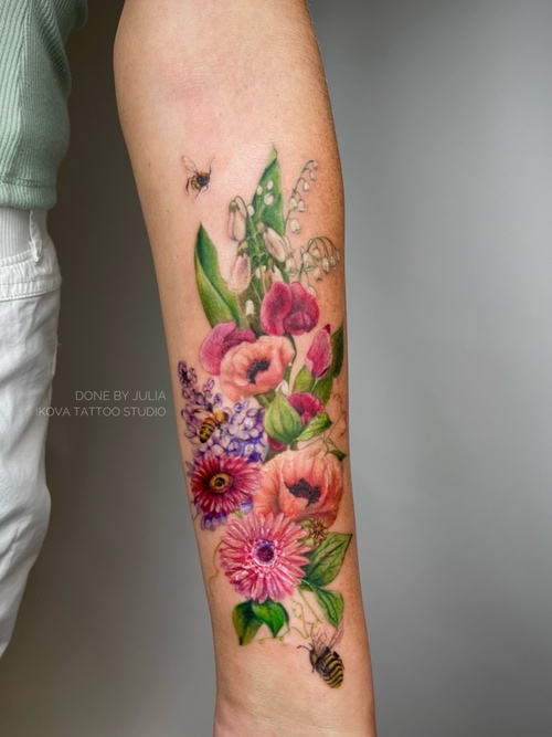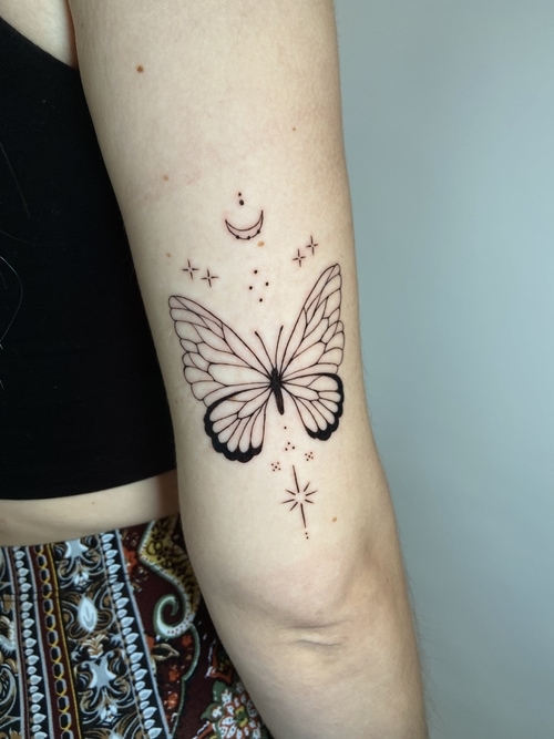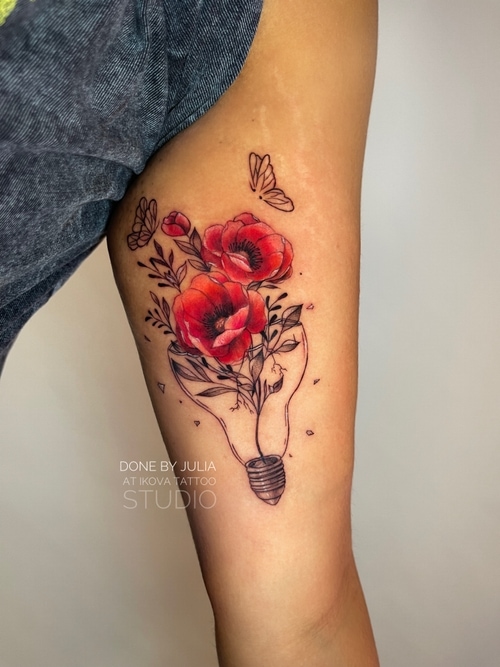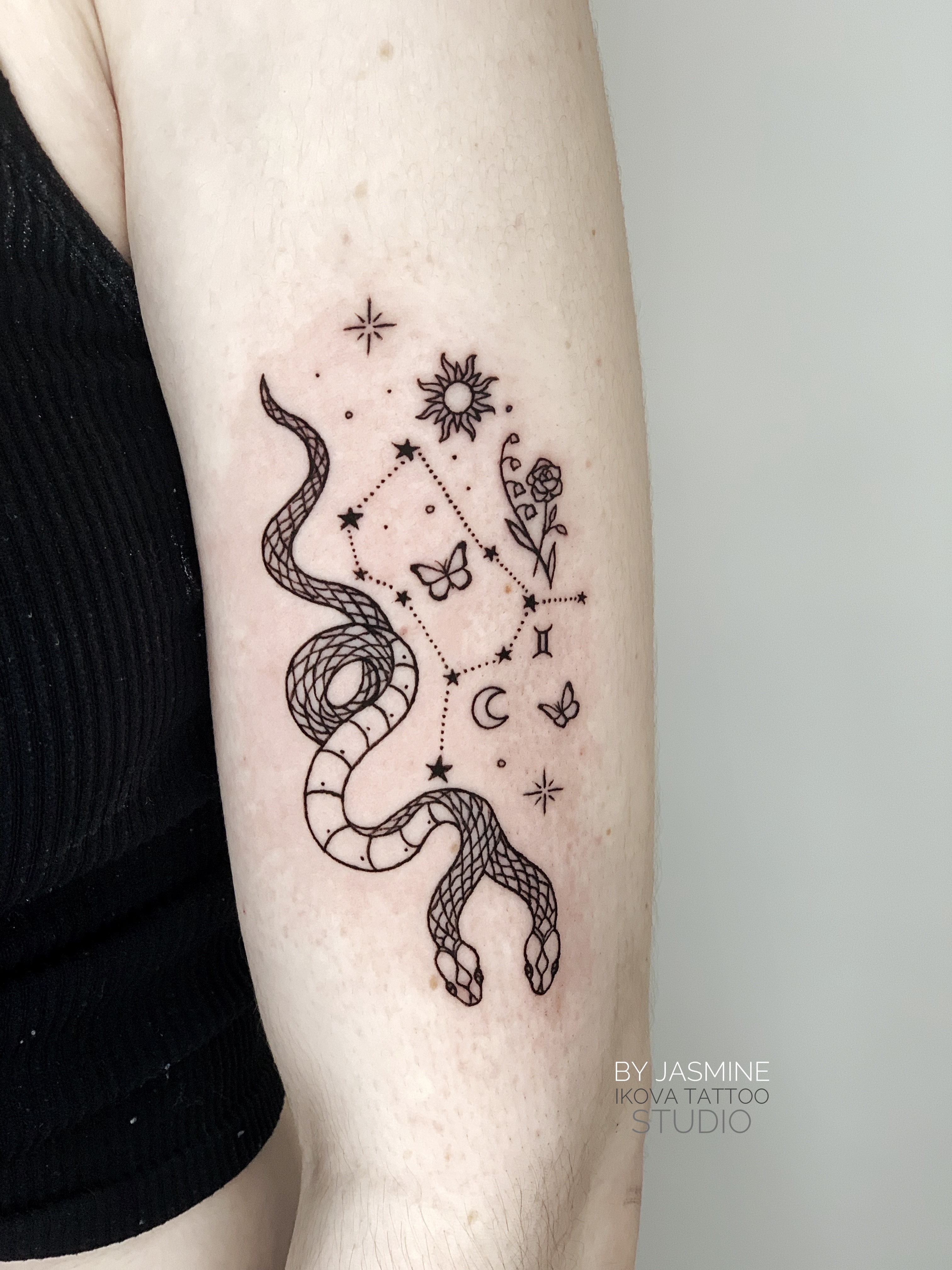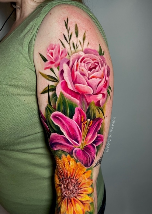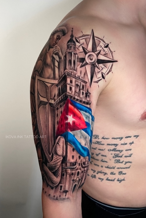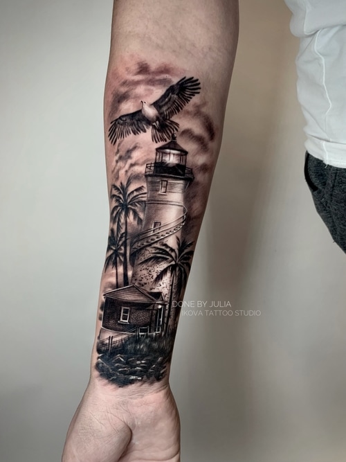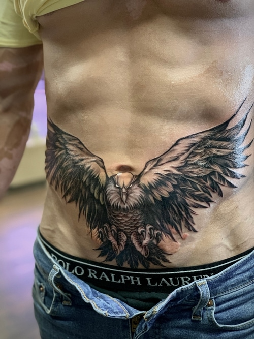 Black and gray tattoos are done without use of color but done with grayscale shading that involves multiple shades of gray. What gives dimension and depth is the smooth transition from darker to light shades that results in a beautiful black and white composition.