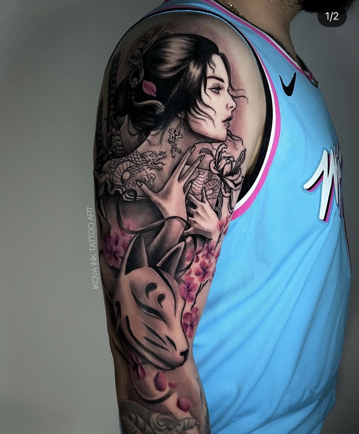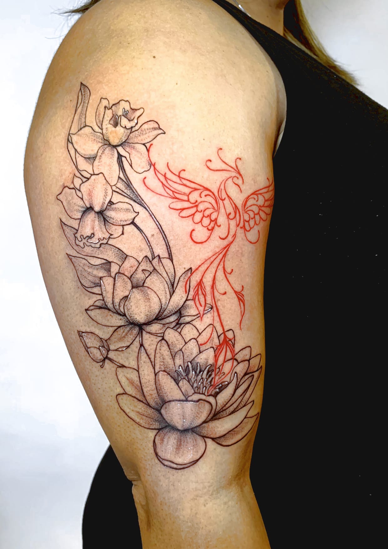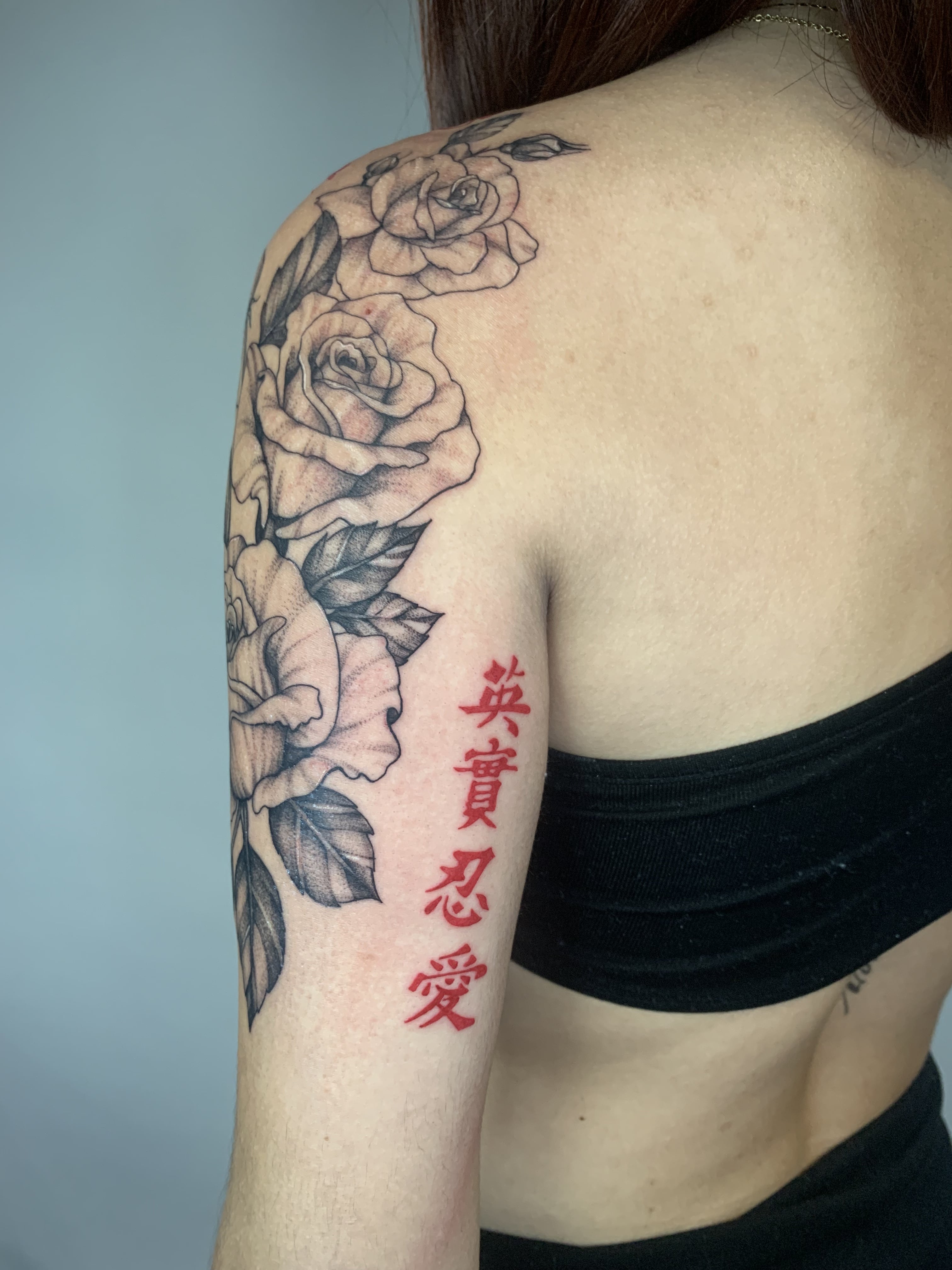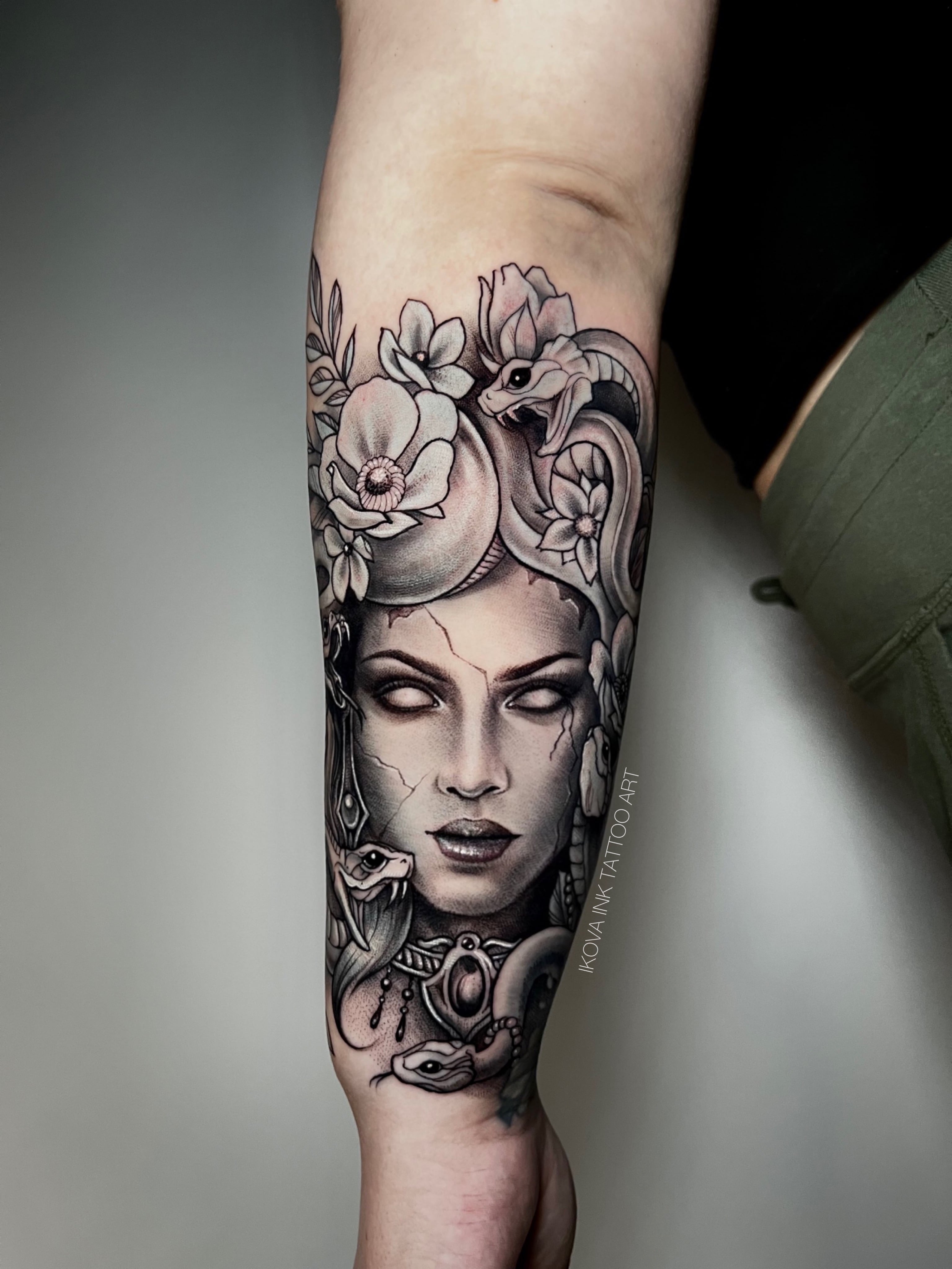 Black and gray tattoos are done without use of color but done with grayscale shading that involves multiple shades of gray. What gives dimension and depth is the smooth transition from darker to light shades that results in a beautiful black and white composition.